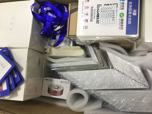 包装很给力,没有一个破损的,确实细心周到,又给我送了不少工牌卡。虽然小东西,自已买可都是钱。画册,台卡,收款音箱,支付盒子,宣传单可是一样不落下阿。完美。