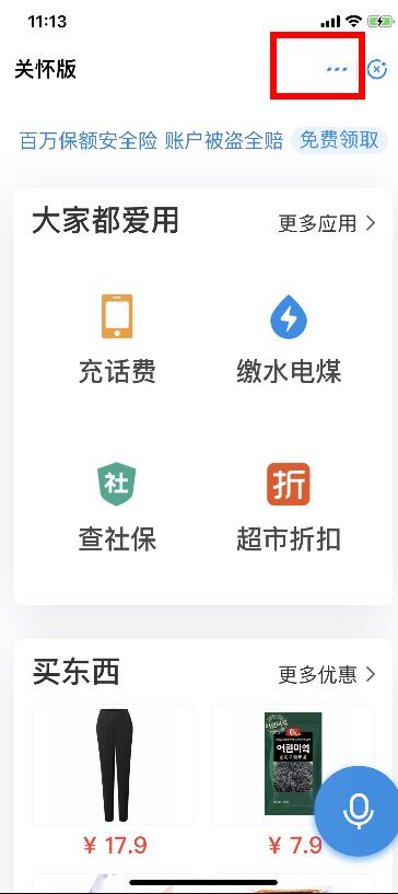 3、就可以进入支付宝关怀版之老年版支付宝小程序;