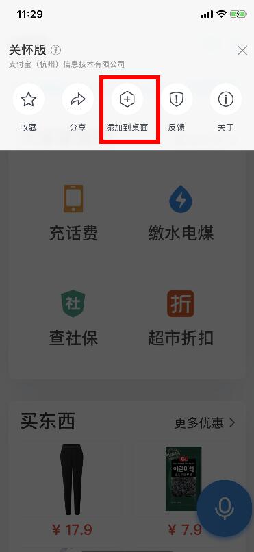 4、点击3个点选择“添加到桌面”,下次点击手机桌面这个小程序就可以。