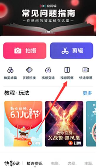 2、之后我们打开下载好的快剪辑APP,点击“视频同框”选项;