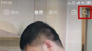 我们可以使用同款道具的方法去找到这个特效,在抖音里点击右上角【搜索】。
