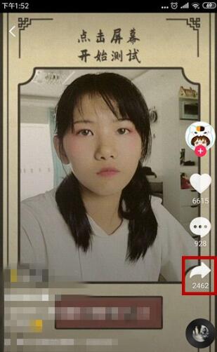 然后会播放别人的测前世特效视频,点击右侧的【分享】功能,如图所示。