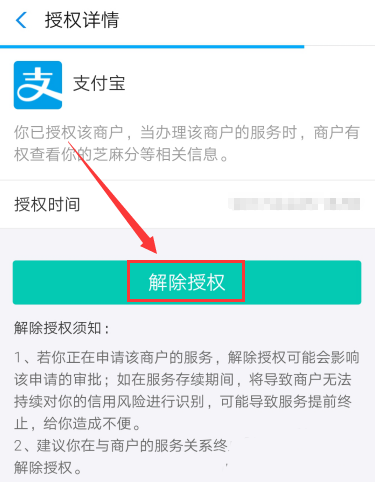 6、授权详情界面,点击“解除授权”。