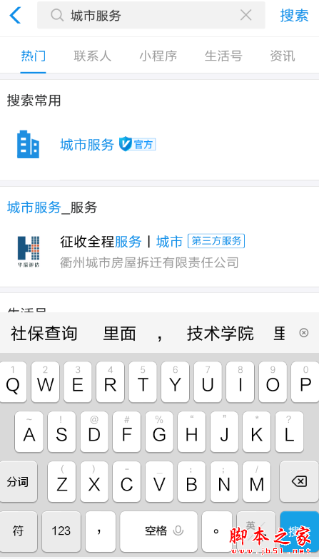 1、倘若想查看自己绑定的社保卡余额,那么就需要在支付宝的首页输入搜索“城市服务”关键词,然后在其中查询社保余额。