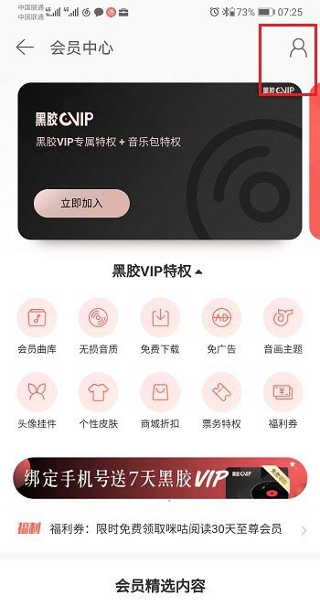3、进去会员中心,点击右上方的人图标,如下图所示: