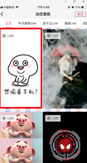 1、现在小伙伴们如果想要制作出“干啥想偷看我手机壁纸”,那么我们就得先去下载“动态壁纸精灵”APP,然后搜索找到“想偷看手机”的动态壁纸(如下所示)。