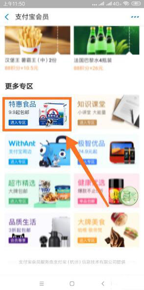 5一直滑倒“更多专区”,点击“特惠食品”即可。