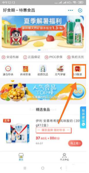 7如图所示,找到最边上的“9.9限量”,点击进入就可以看到很多9.9元的食品啦。