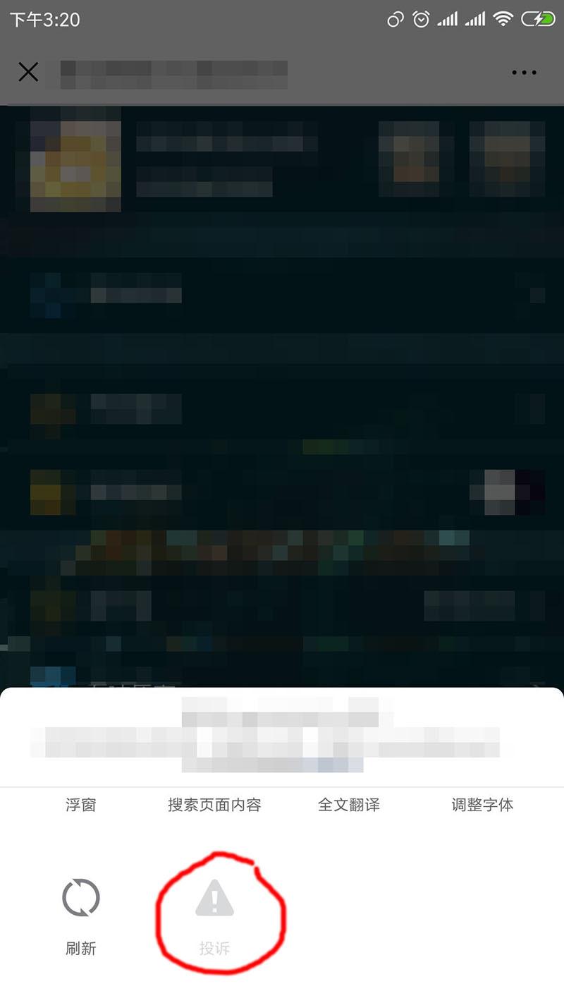 怎么屏蔽微信投诉按钮?这技术有点绝,在百度找遍了相关资料,也就只有一个屏蔽分享的代码可用,可是这个屏蔽分享的代码还是有投诉按钮的,我根据之前的资料进行了改进。最终实现微信端屏蔽举报按钮。效果如下图所示!