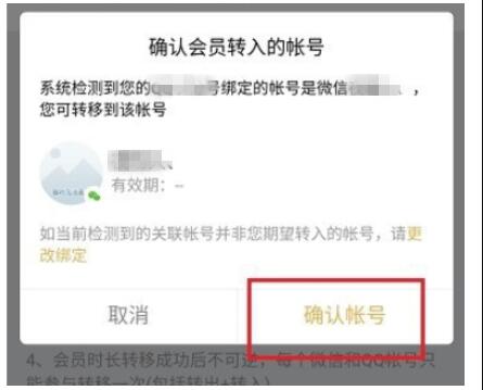 选择会员转移的账号,点击【确认账号】即可,