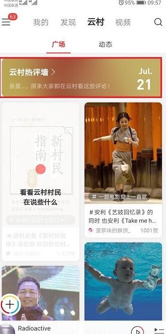 第三步进去云村之后,点击云村热评墙,如下图所示:
