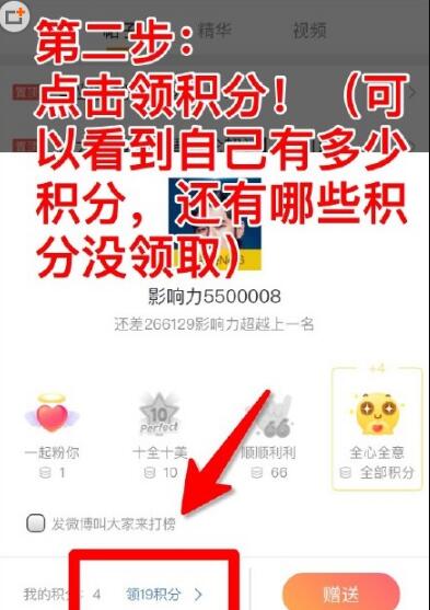 2、随后我们就可以看到自己有多少的积分了,然后可以点击领取积分,为打榜做准备!