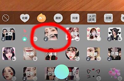 2、接着我们就会打开并进入到视频的拍摄界面,在该界面可以点击左下角的“贴纸”按钮,从“热门”分类下就可以找到我们需要用到的“黑化”特效。