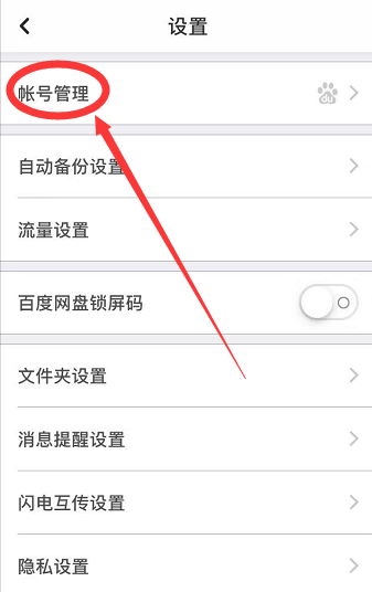 3、在设置界面,点击帐号管理,进入帐号管理界面