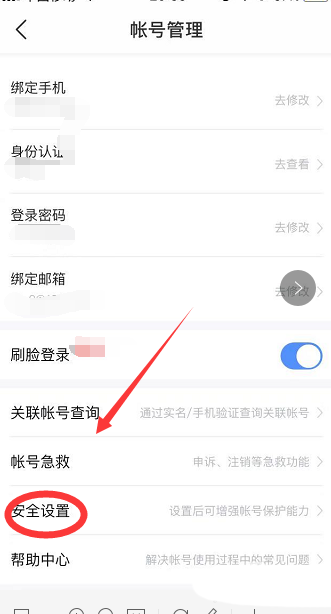 4、在帐号管理界面,点击安全设置