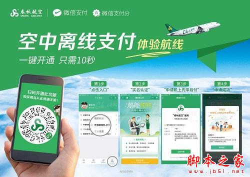 7月24日,微信支付正式推出空中离线支付产品“微信机上付”,并在春秋航空往返上海与成都的9C8887/9C8888两次航班试点上线。在7月24日至7月28日期间,乘坐该对航班的乘客可先行申请体验服务。