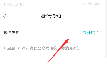 4、在通知栏中,选择微信通知选项,如图,将其打开