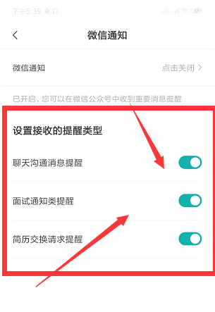 7、在系统微信通知栏中,还可以设置接收的提醒类型设置。