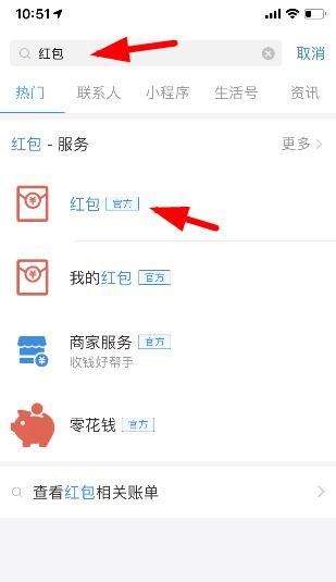 首先打开手机支付宝app,搜索红包,如下图所示: