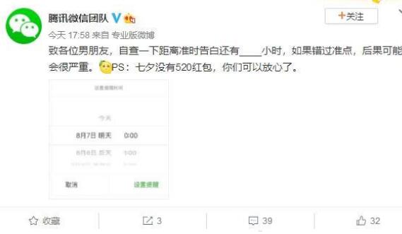 昨天,微信官微公布了一个让男生振奋的好消息:“七夕没有520红包,你们可以放心了。”