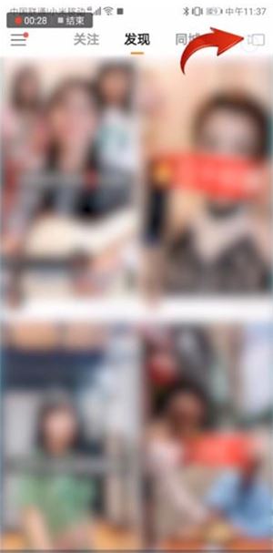 1.打开最新版本【快手】,然后点击右上角摄像机图标