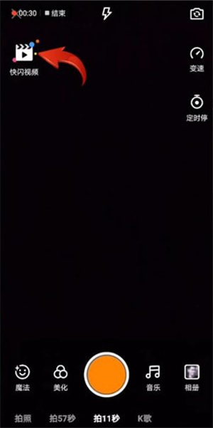 2.进入视频拍摄页面,即可看到左上角的【快闪视频】图标。