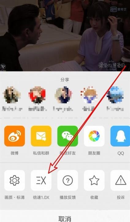 此时会弹出一系列菜单,点击【倍速】,如图,