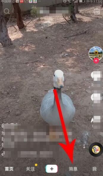 打开抖音视频推荐界面,然后点击“消息”菜单
