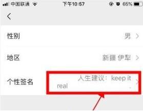第一步:先编辑要写的个性签名。比如:人生建议:keep it real