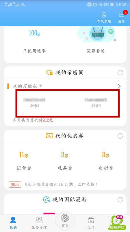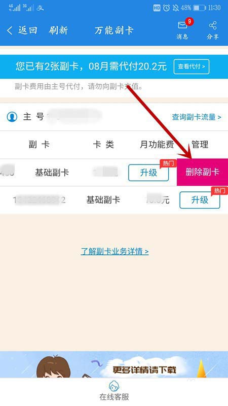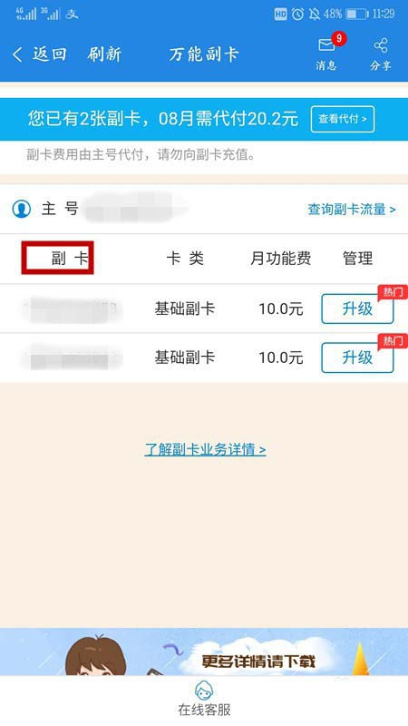 4、因为有一次活动,办多了一张副卡,现在有二张副卡。