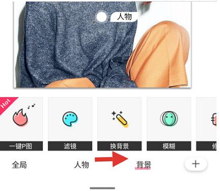2、在处理界面,我们在底部找到背景这一元素,然后点击换背景这一个功能,