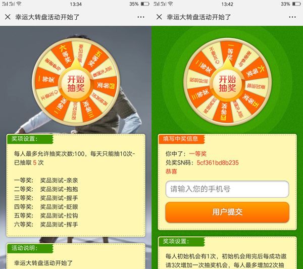 现在微信公众号涨粉是比较困难的,因为太多的运营手段已经让用户产生了审美疲劳,这样一来,有时候商家企业为了更好的吸引人气值,会选择经常的做一些微信转盘小程序来提高人气值,特别是现在那么多人应用手机微信的场景下,商家企业完全能够直接建立自己的微信转盘抽奖小程序,随后吸引用户重视品牌甚至是到店进行消费。一个微信公众号转盘抽奖小程序,不单是能够宣传策划品牌带来交易量,一起还能给商家企业的微信公众账号吸引粉丝。下面我们具体看看微信转盘小程序怎么做的