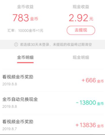 我们通过观看视频,可以看到会增长金币。另外金币可以换成现金,10000金币等于1人民币,并能提现到微信。
