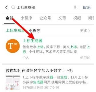首先我们打开微信搜索上标生成器: