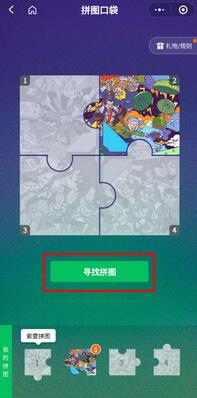 1.点击寻找拼图,通过扫一扫的方式来获得缺少部位的拼图,不过这个需要一定的运气,有的玩家可能只用扫四次就集齐了,有的确永远差一张。