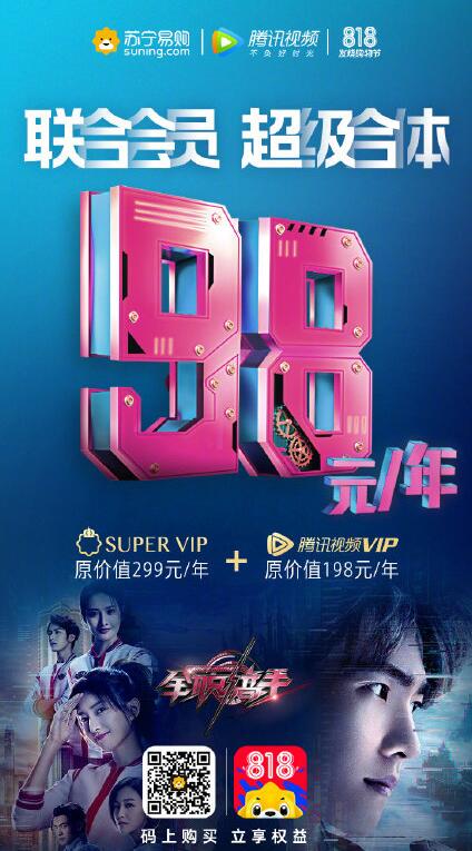 苏宁易购将联手腾讯视频VIP推出98元/年的联合会员服务。