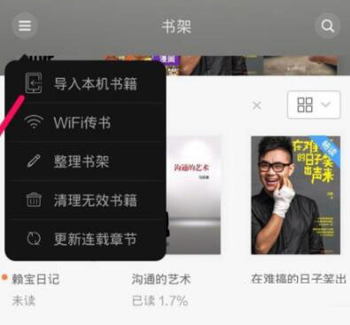 点击进入书架页面,选择右上角导入本机书籍功能。