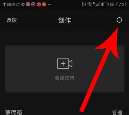 打开剪映APP首页,然后点击右上角“齿轮”图标