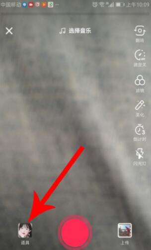 打开抖音录制视频的界面后点击“道具”
