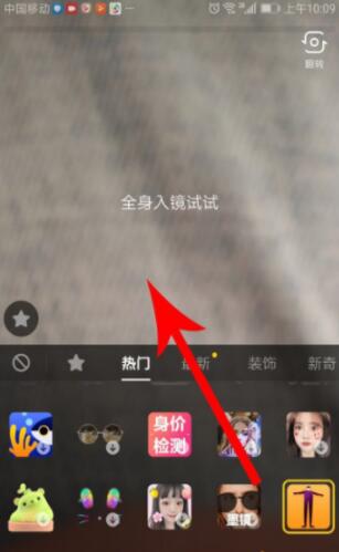 打开抖音的“道具-热门”列表以后向下滑动,然后点击“巨长腿”道具(暂时位置见下图),接着再去点击视频录制画面