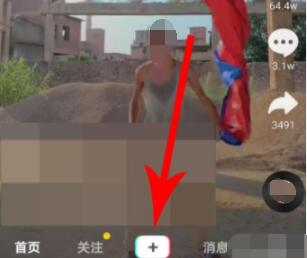 拍摄巨长腿时首先打开抖音,然后点击“+”