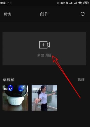 打开的剪映应用主界面,点击“新建项目”的图标。