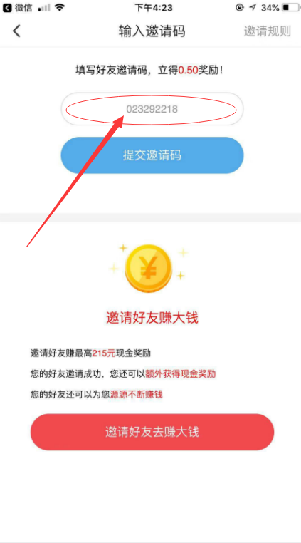 ③此时您终于到了最后一步,将东方头条邀请码【008693934】填入后,点击《提交邀请码》,这时你就可以得到额外的现金奖励啦,而且是秒到账的!