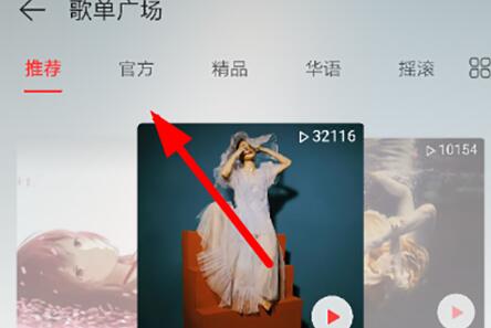 2、进入到“歌单广场”界面之后,我们屏幕上面功能列表中的“官方”频道,这样就可以进入到官方VIP歌单了。