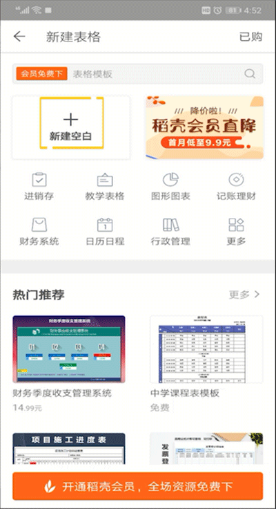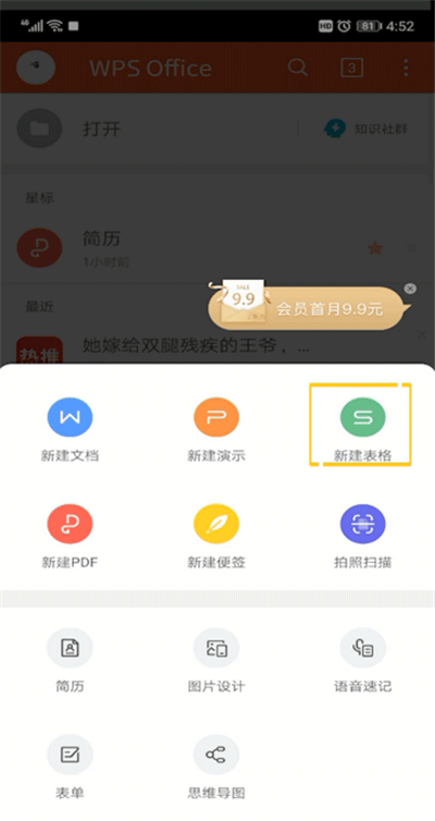3、点击新建表格