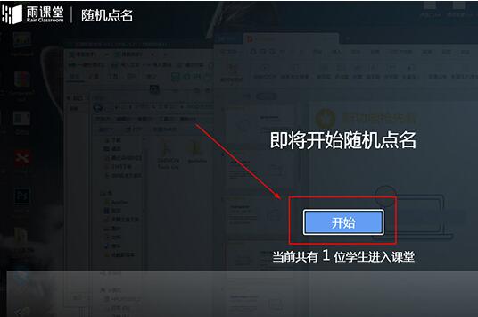 6、出现雨课堂随机点名的界面,大家可以看到当前进入课堂的学生数量,点击“开始”选项即可开始随机点名;这里需要注意,如果没有学生进入课堂,是不能够进行点名的,如下图所示: