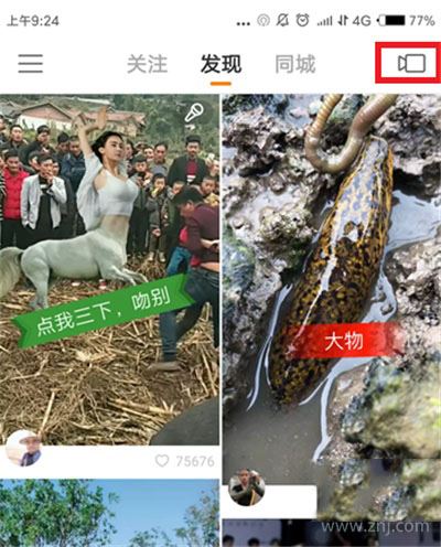 1.打开快手APP,右上角的录制按钮。