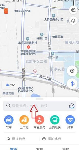 第一步打开高德地图,向上滑动,如下图所示: