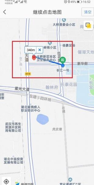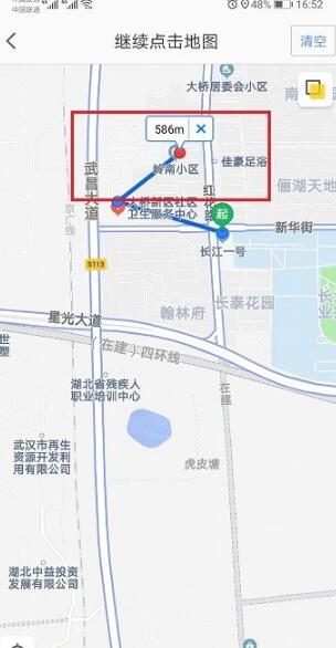 第四步进去测距之后,点击两个地点,可以看到两个地点的直线距离,如下图所示:
