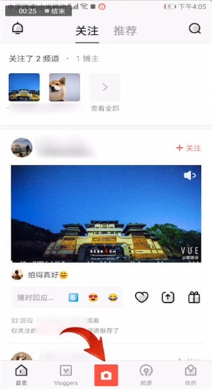 首先打开【VUE Vlog】APP,然后点击底部【拍摄】图标,